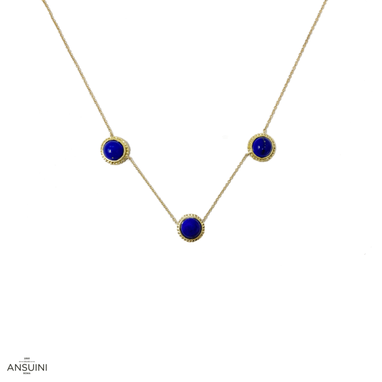Collana realizzata interamente a mano in oro giallo 18 carati con 3 lapis cabochon 8 mm.