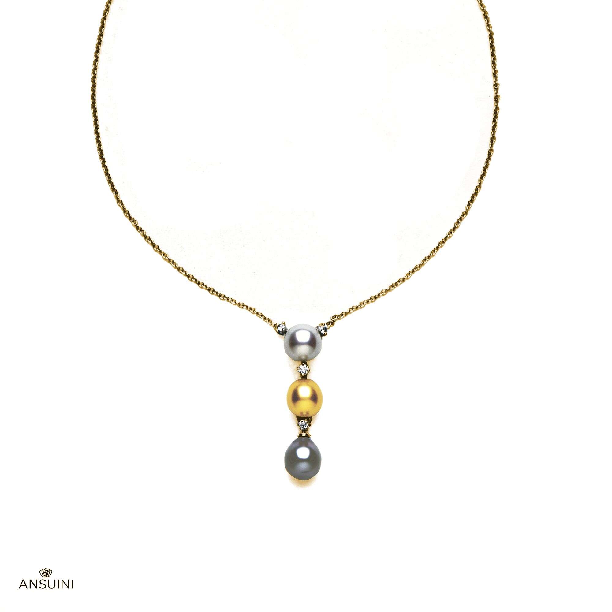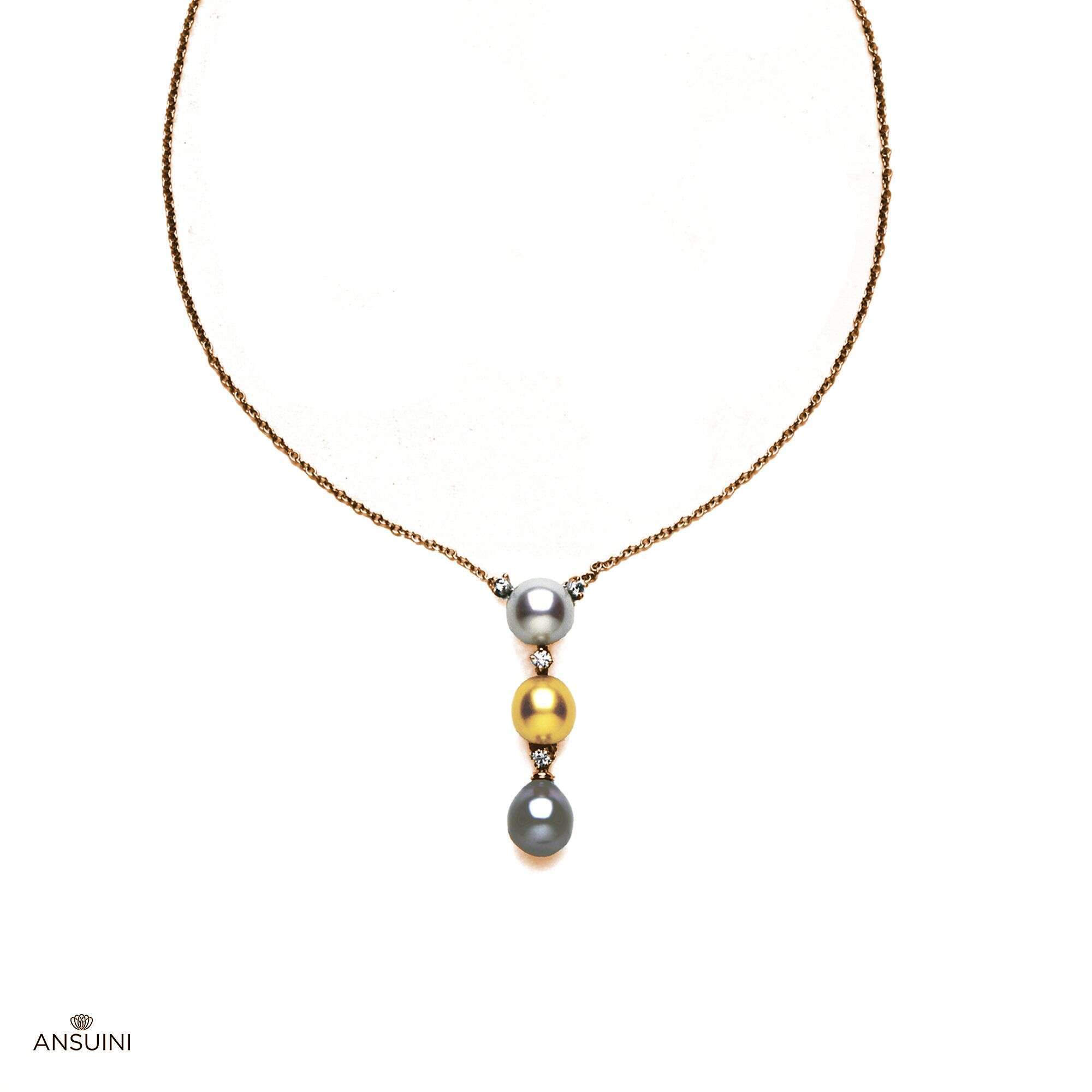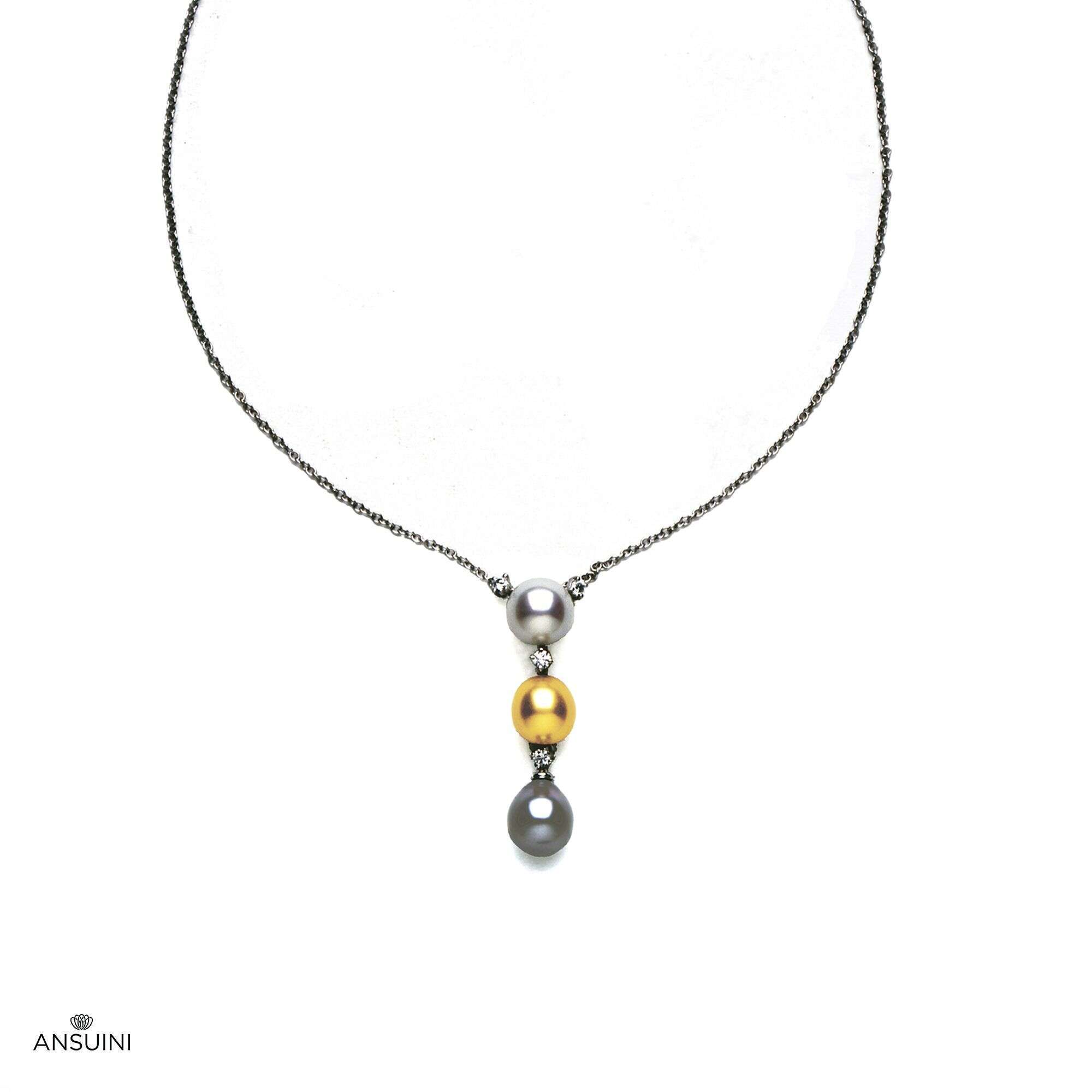 A refined and original necklace with an Australian pearl, a golden and a dark of the southern seas alternating with diamonds.