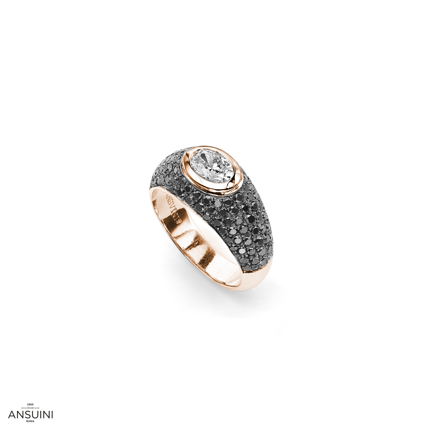 Band of brilliant Trombino model with 1 brilliant oval surrounded by a pavè of brilliant black