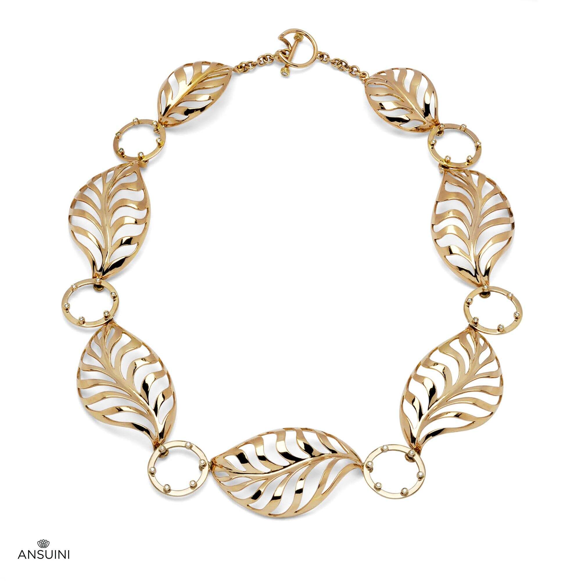 Elegant and refined necklace, interspersed with circular gold elements with diamonds that enhance the structure.