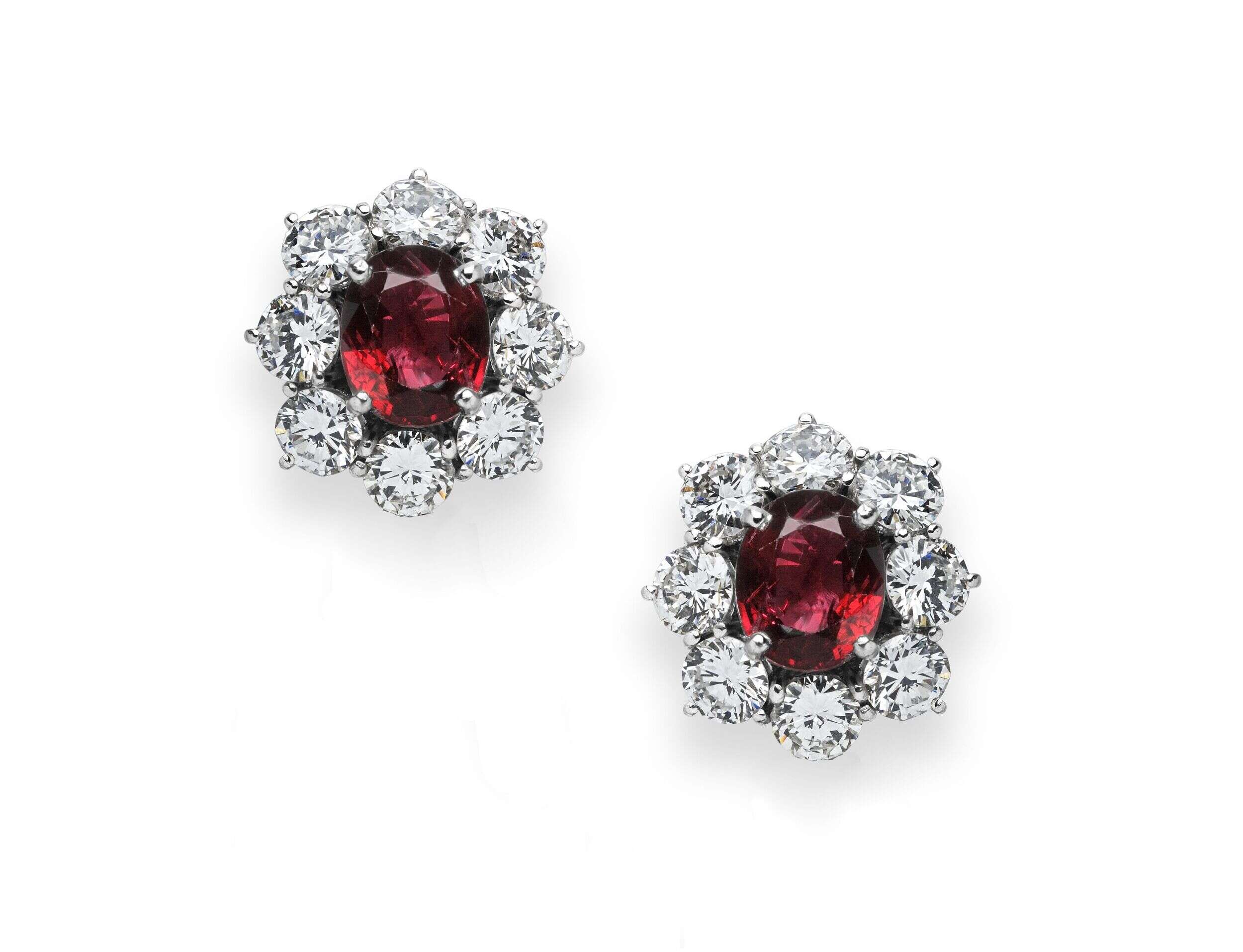 Elegant earrings with ruby and diamonds.