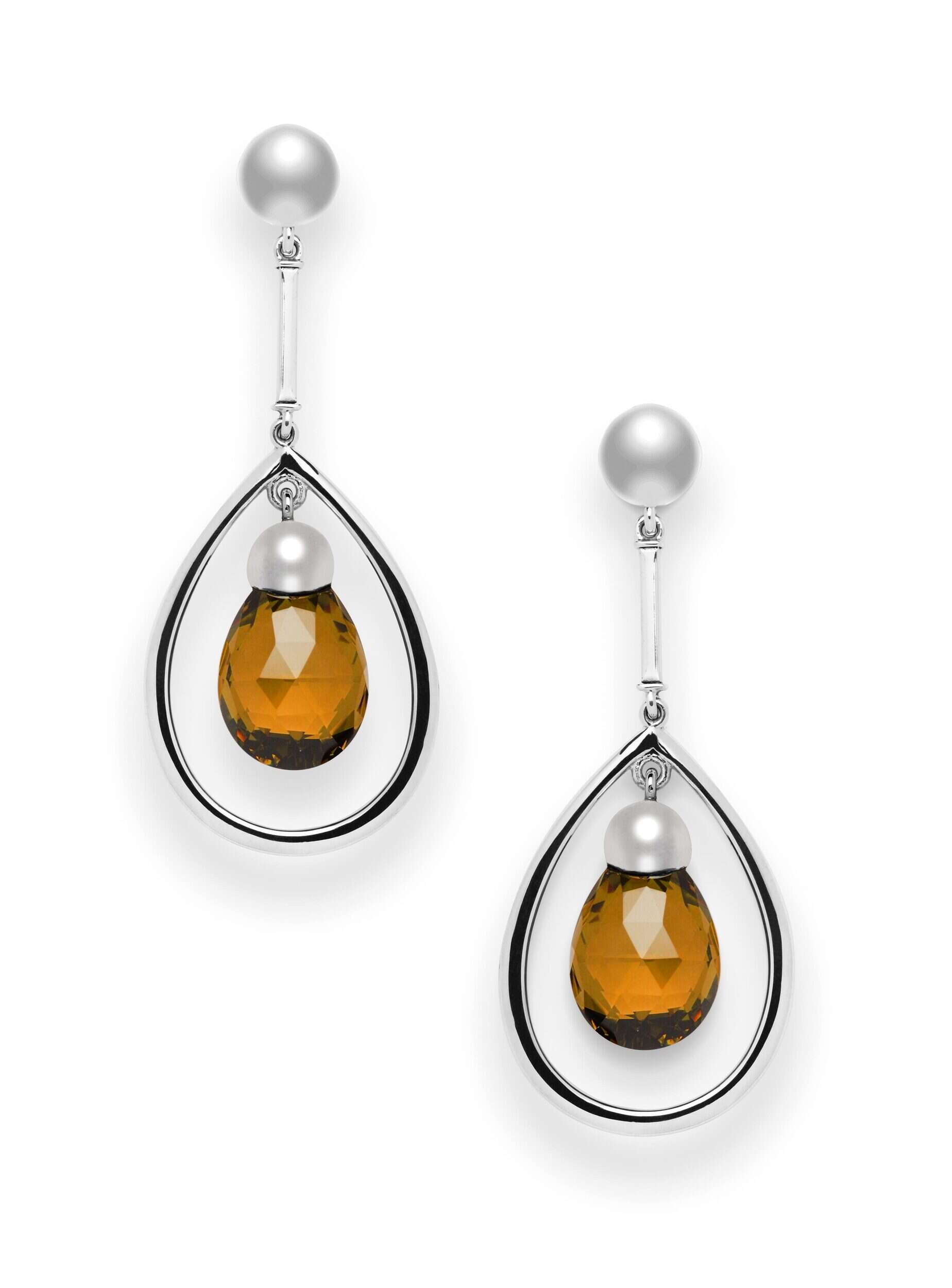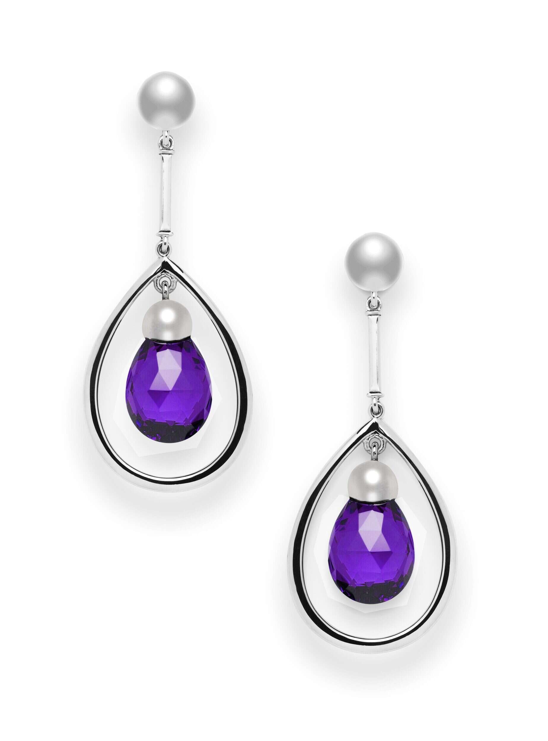 Spazio earrings elegantly dress the face. The lightness of the lines and the suspended stones recall the absence of gravity, making the look very sophisticated.